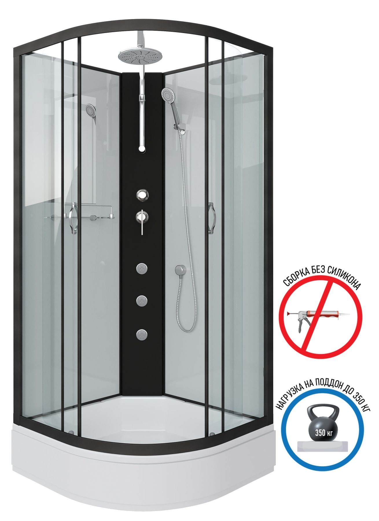 Душевая кабина Niagara NG-6703-14BKTG с гидромассажем 80x80см чёрный/прозрачное
