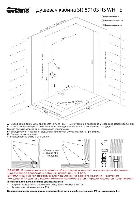 • Быстрый, технический доступ к системе управления душевой кабины