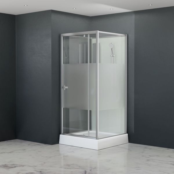 Удобная и популярная квадратная душевая кабина в разных размерах, распашная дверь, безопасное закалённое прозрачное с матовой полосой посередине стекло, профиль Сатин - Браш - RGW AN-207, это минималистичное, удобное и законченное изделие из стекла для душа, имеет функционал душевого бокса без крыши и форсунок для гидромассажа. Данная модель душевой кабины удовлетворит практически каждого покупателя, кому требуется душ быстро, без заморочек. Модель спроектирована в классическом стиле, но имеет ряд надежных, качественных особенностей, влияющих на повышение ее стоимости перед другими аналогами, например высококачественная покраска алюминиевого профиля в Сатин - Браш цвет и крепкий душевой поддон у основания, устойчивость к повреждениям и долговечный срок службы фурнитуры. Если вы ищите качественную и быстро сборную отдельно стоящую кабину в дом или баню — это модель для вас, она имеет высокий рейтинг продаж и удовлетворяет потребности клиента, стремящегося к быстрому и удобному принятию душа.