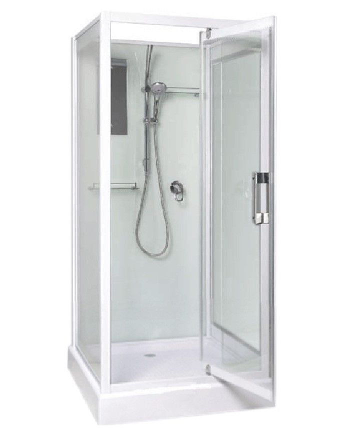 Стекло 6 мм. Задняя стенка - крашеное непрозрачное белое . Фронтальное стекло и боковые стекла прозрачные. Дверь стекло прозрачное.