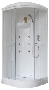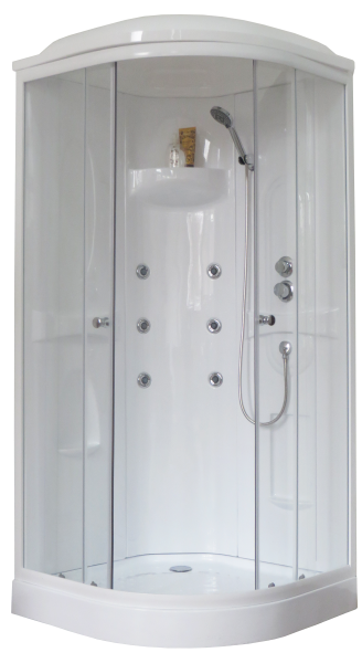 Душевая кабина RB 90HK2-T сделает ванную комнату визуально светлее и просторнее. Это достигается за счет белых элементов конструкции. Душевую кабину просто установить, даже в компактную ванную комнату, при этом она элегантно впишется в любое интерьерное решение. Прозрачные двери из стекла придают интерьеру ванной комнаты воздушность, легкость и простор. Для приема душа предусмотрены две лейки (верхняя и ручная), полочка, где можно расставить средства гигиены. Заряд бодрости подарят шесть гидромассажных форсунок. Акриловый поддон с антискользящим покрытием имеет оптимальную для входа высоту. Движение дверей по направляющим обеспечивают подшипниковые ролики.