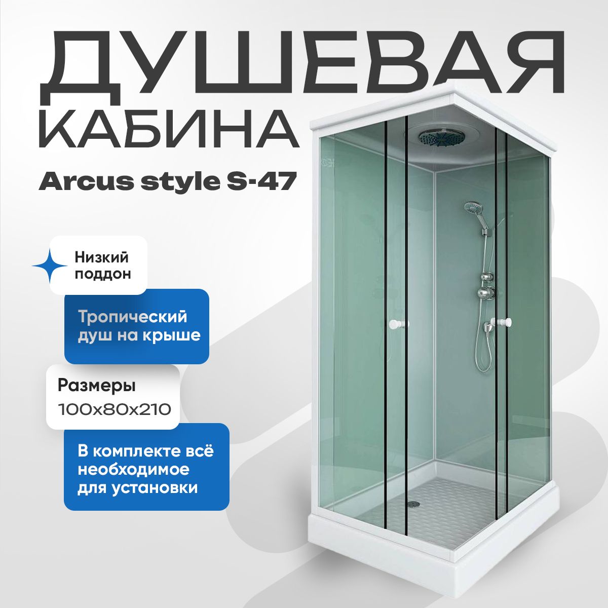 Душевая кабина Arcus style S-47 низкий поддон 100*80*210 купить