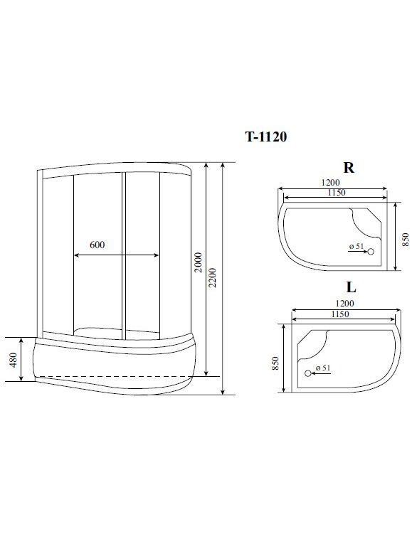 Душевая кабина Timo Standart T-6620BFL Black Fabric L 120x85см купить