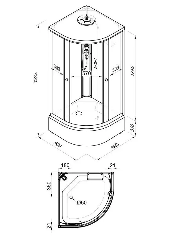 Размер: 90 x 90 x 231.5 см