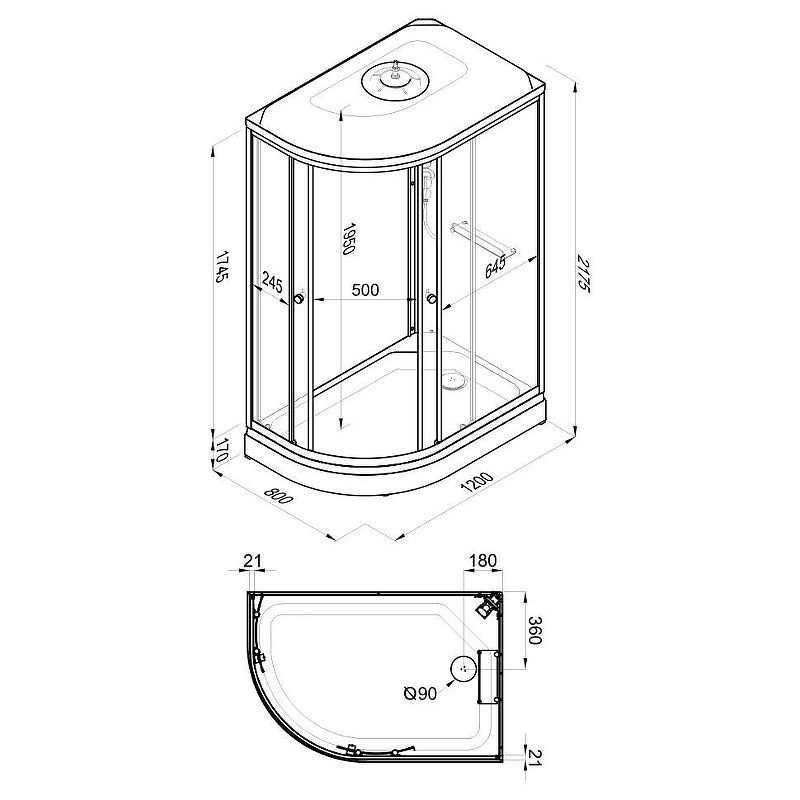 Душевая кабина с крышей, левая/правая