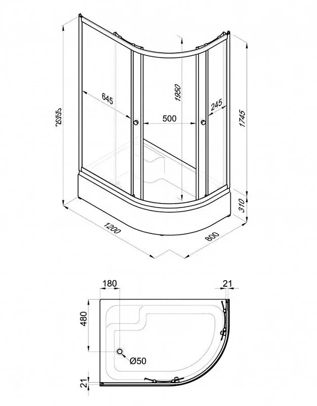 Душевая кабина Triton Коралл-Лайт Щ0000068951 левая 120x80 см профиль белый стекло градиент купить