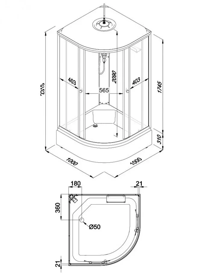 Размер: 100 x 100 x 231.5 см