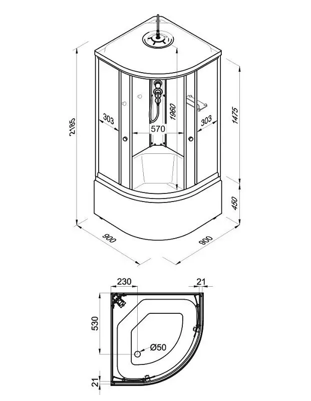 ДК Лайт 90*90 Б, 9 мест+сифон D50