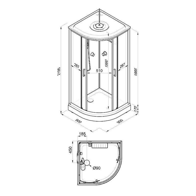 Душевая кабина Triton Прайм-Сатин Щ0000071581, 90 x 90 см, поддон низкий А, стекло прозрачное, профиль сатин