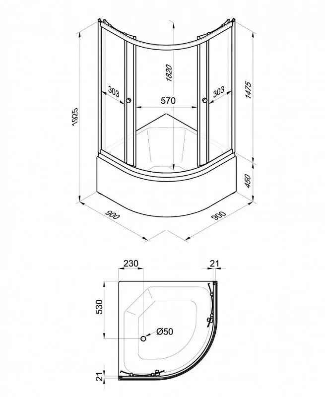 Высота с поддоном: 192.5 см