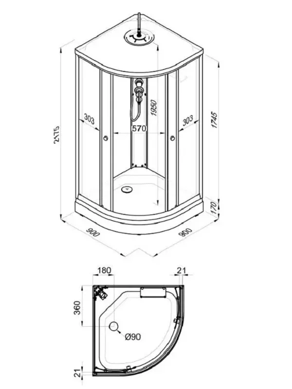 ДК Мозаика 90*90 А, 7 мест+сифон D90