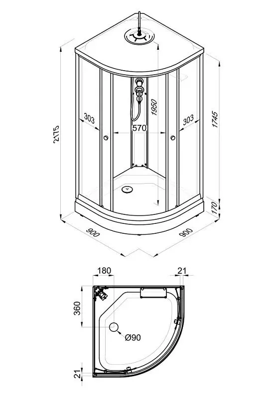 ДК Топ 90*90 А, 7 мест+сифон D90
