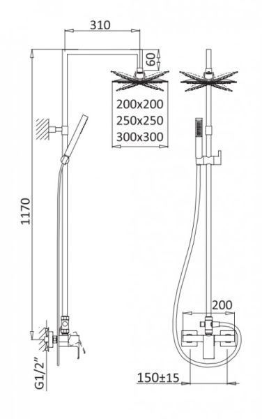 - Размер верхнего душа, см:30