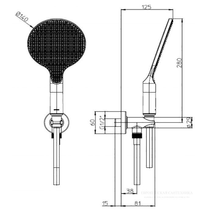 Bossini Apice душ ручной: Ø 140 мм с водорозеткой скрытого монтажа и держателем, шланг Cromolux 1500 мм 1/2 “F, цвет хром.