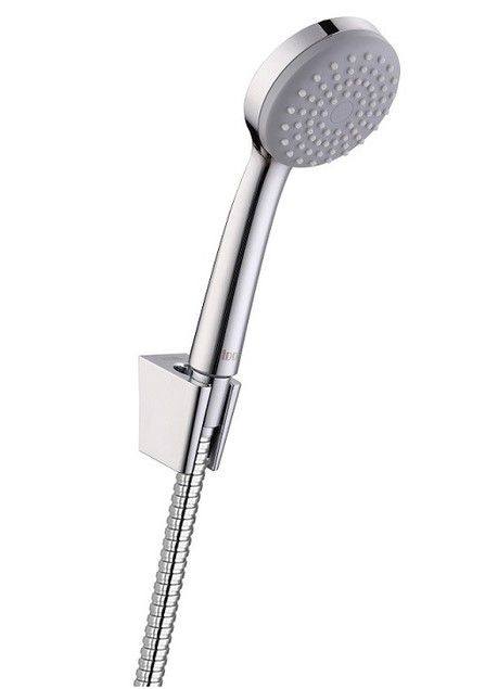 Держатель из качественного ABS-пластика с двумя положениями для лейки и ПВХ-шланг (1,5 м) в оплетке из нержавеющей стали с функцией защиты от перекручивания идут в комплекте.