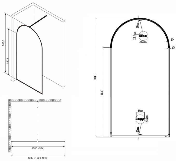 Душевая перегородка ABBER Immer Offen AG64100B8 100см чёрный