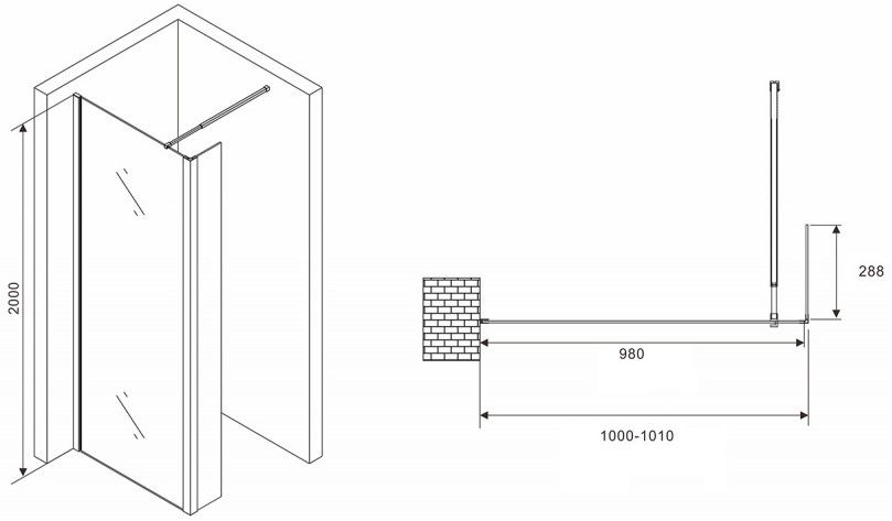 Душевая перегородка ABBER Immer Offen AG66100B 100см чёрный