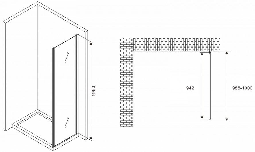 Душевая перегородка ABBER Schwarzer Diamant 100см чёрный S100B