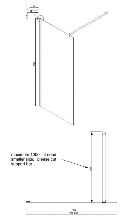 Душевая перегородка Ambassador Walk-in 15031110 100см чёрный/прозрачное