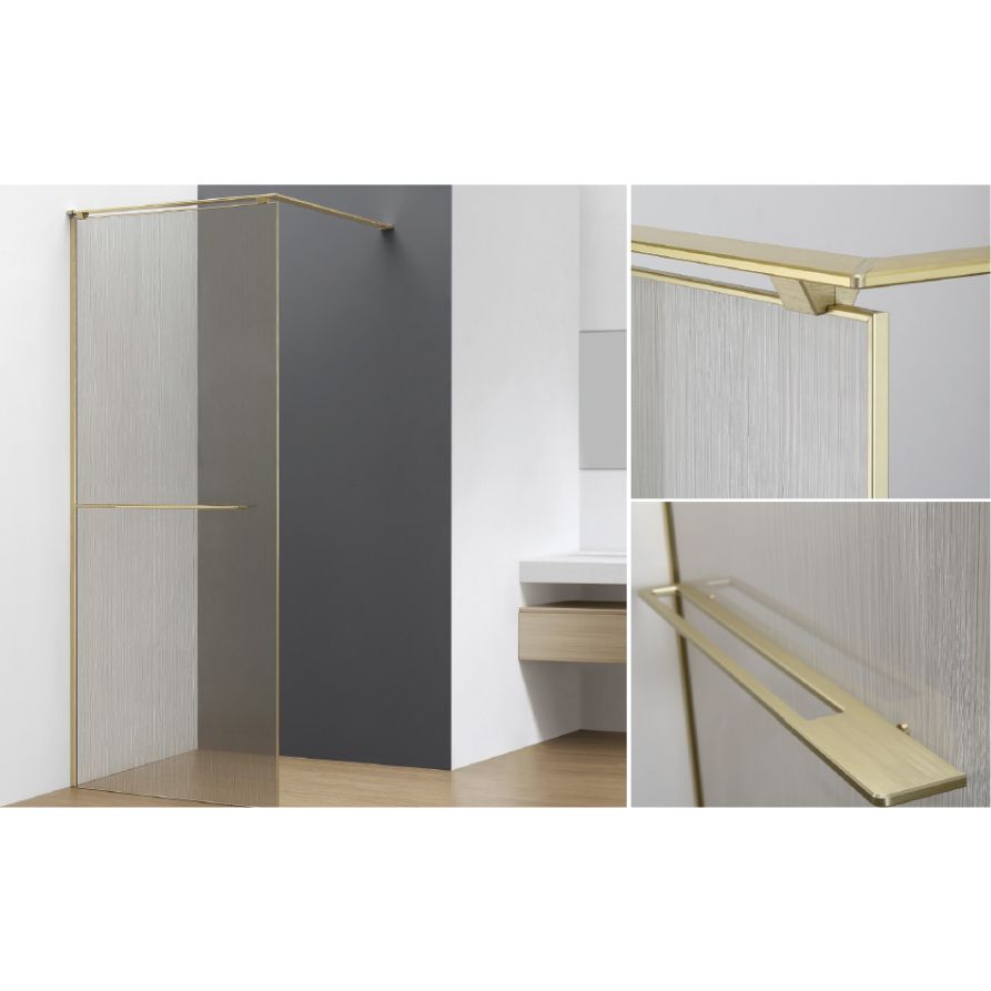 Душевая перегородка AQUAme AQM3720-3-10 100 см профиль золото брашированное стекло лен