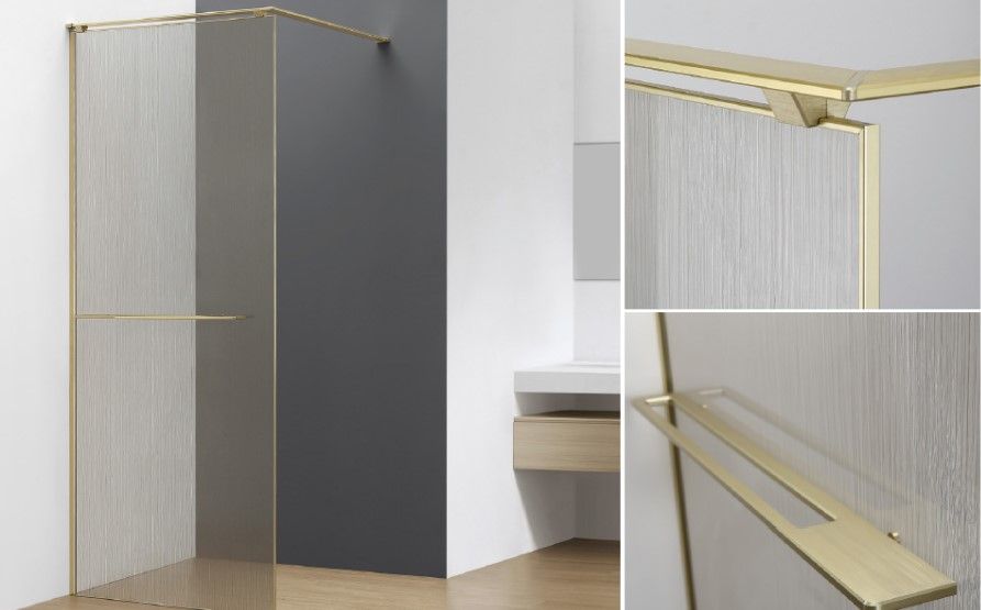 Душевая перегородка AQUAme AQM3720-3-9 90 см профиль золото брашированное стекло лен