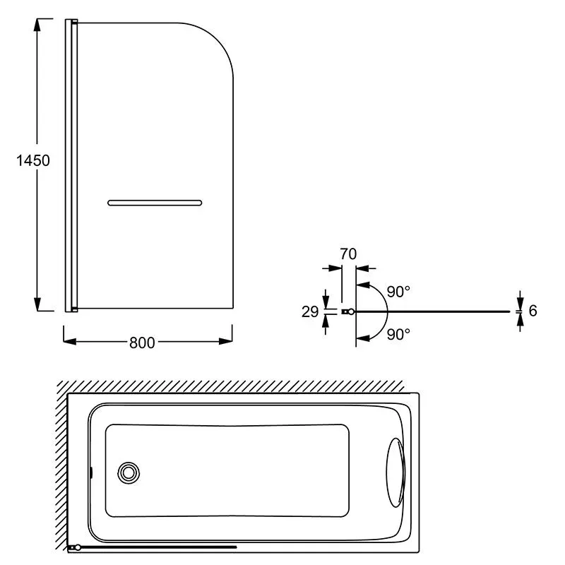 Фиксированное душевое ограждение с матовым стеклом Contra, 90 см