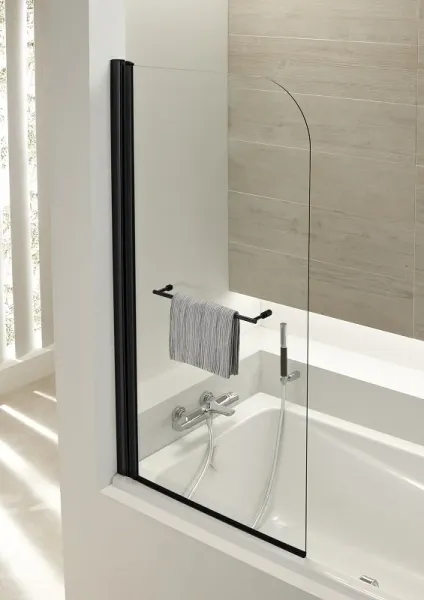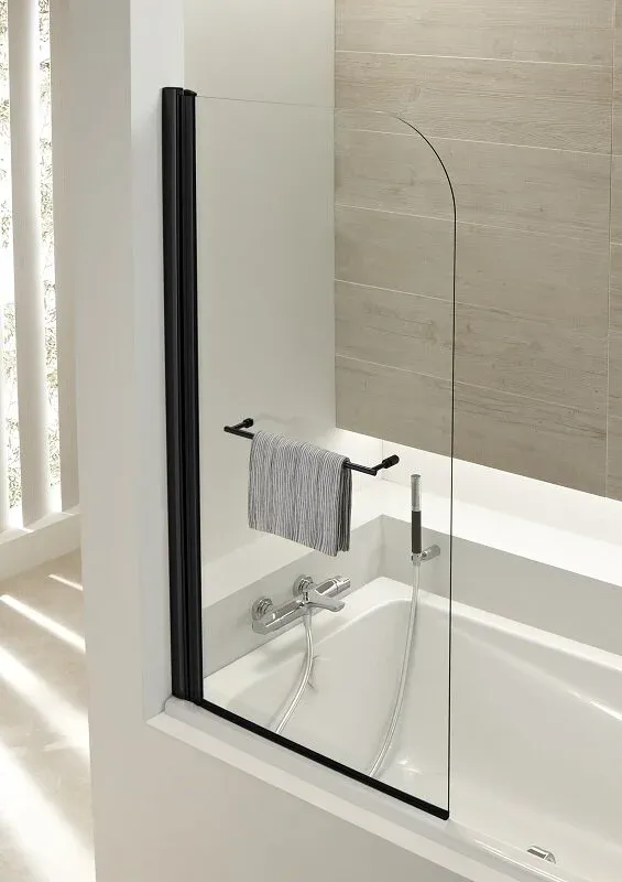 Шторка для ванны Jacob Delafon Odeon Up E4932-BL с полотенцедержателем 80 см профиль чёрный стекло прозрачное купить