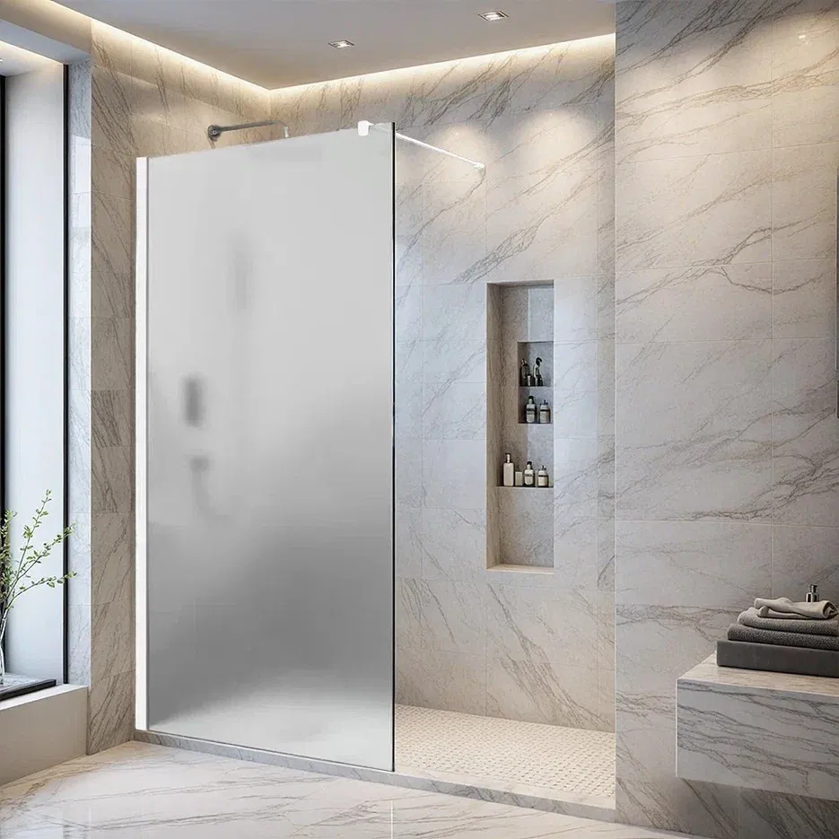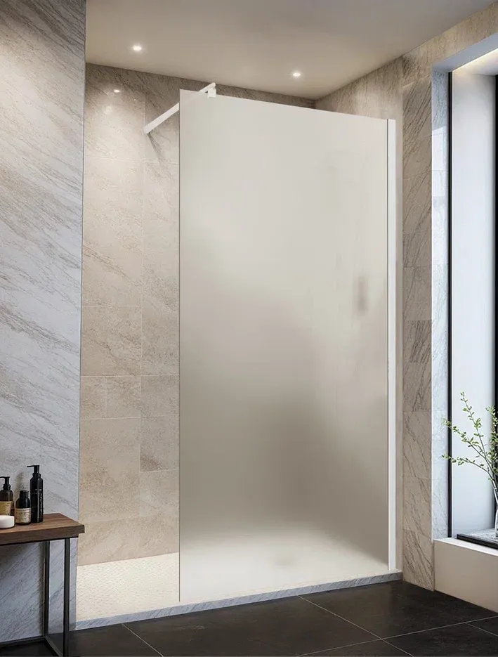 Для изготовления применяют безопасное закаленное стекло толщиной 6 мм, надежно фиксируемое алюминиевым профилем. Цвет профиля белый.Преимущества:Профиль - алюминиевый, белый (Без расширительного профиля);Стекло - закаленное, матовое, толщиной 6 мм;Ширина входа до 1200мм (регулируется штангой при установке) Внимание! Производитель оставляет за собой право вносить изменения в конструкцию и комплектацию моделей без предварительного уведомления!