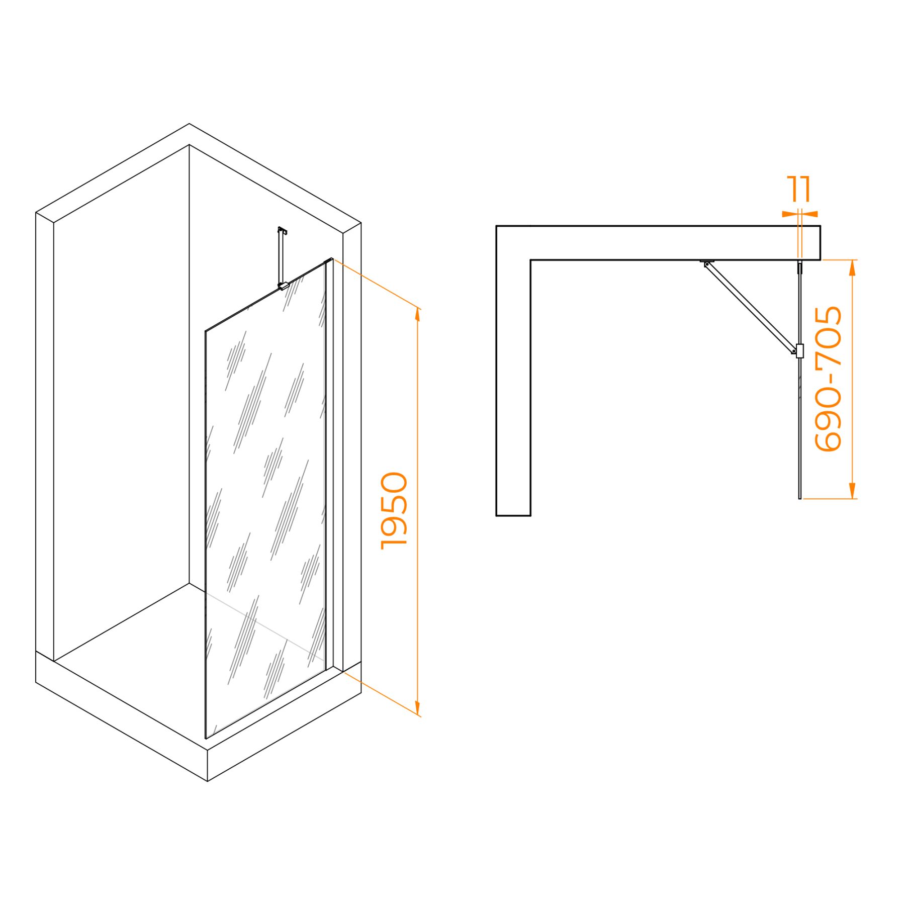 Высота перегородки: 195 см — подходит для большинства ванных комнат.