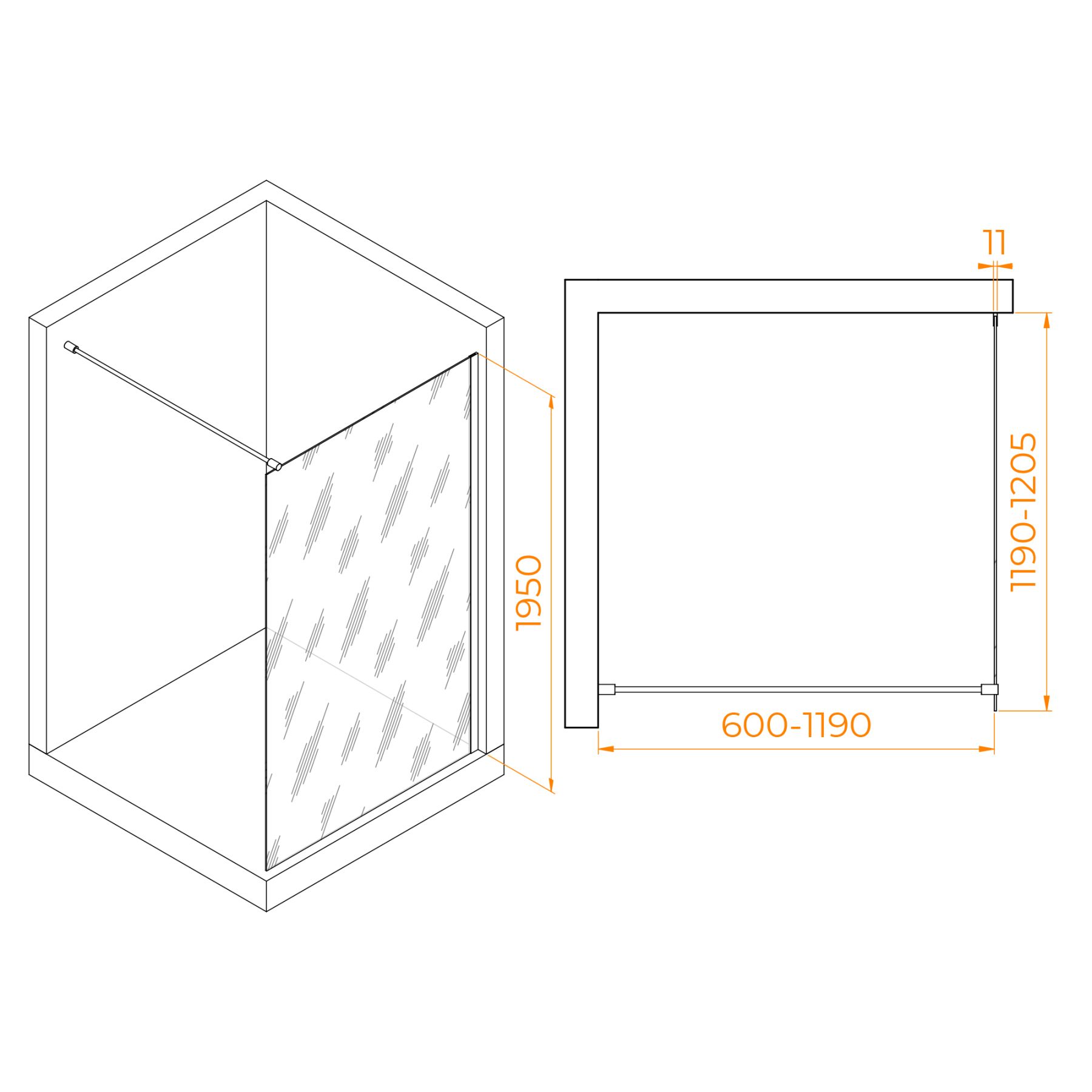 Высота перегородки: 1950 мм — обеспечивает комфортное использование душевой зоны.