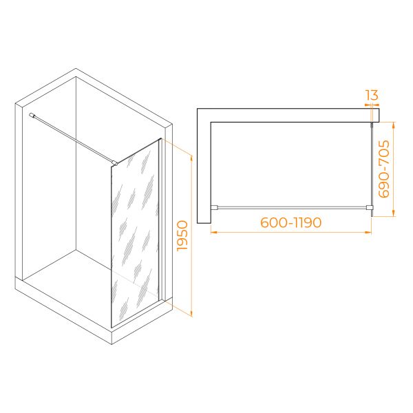 Душевая перегородка RGW WA-010 700 выполнена из прочного закаленного стекла с толщиной 8 мм и анодированного алюминиевого профиля. Она предназначена для создания комфортной и функциональной душевой зоны в ванной комнате.
