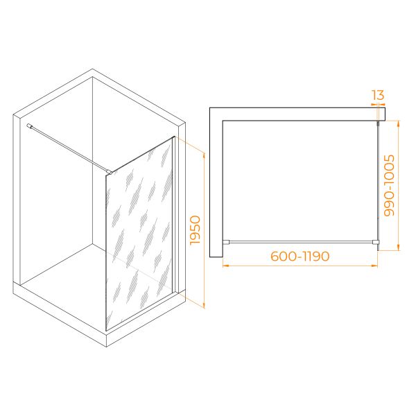 Высота перегородки: 195 см — обеспечивает комфортное использование душевой зоны.
