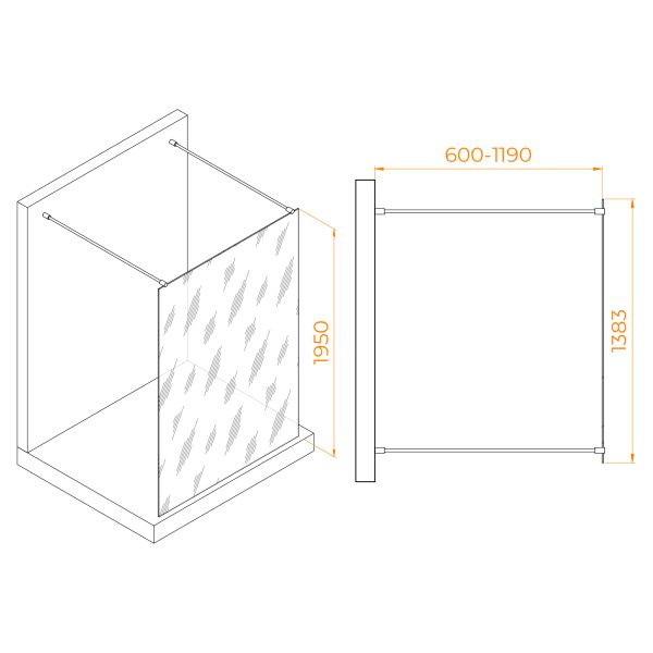 Высота перегородки: 195 см — обеспечивает комфорт и конфиденциальность при использовании.
