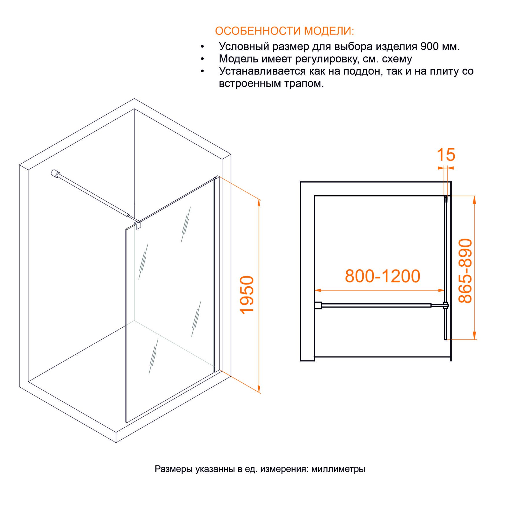 Регулируемый профиль — позволяет адаптировать перегородку под индивидуальные условия установки.