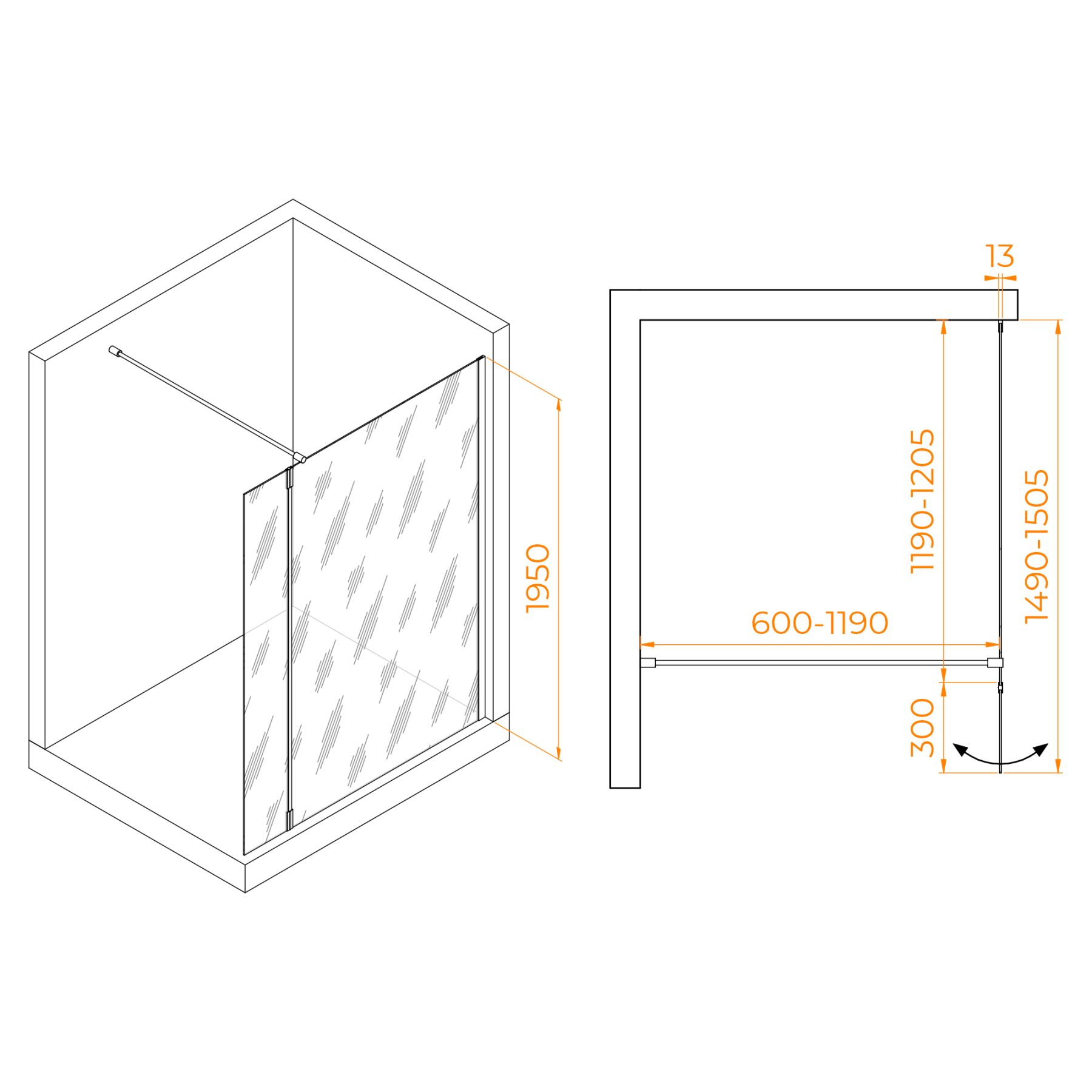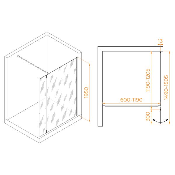 Высота перегородки: 195 см — обеспечивает комфортное использование душевой зоны.