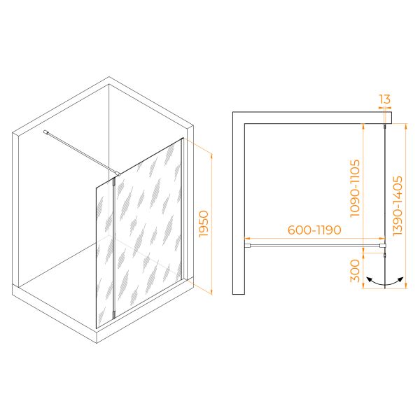 Высота перегородки: 195 см — подходит для большинства ванных комнат.