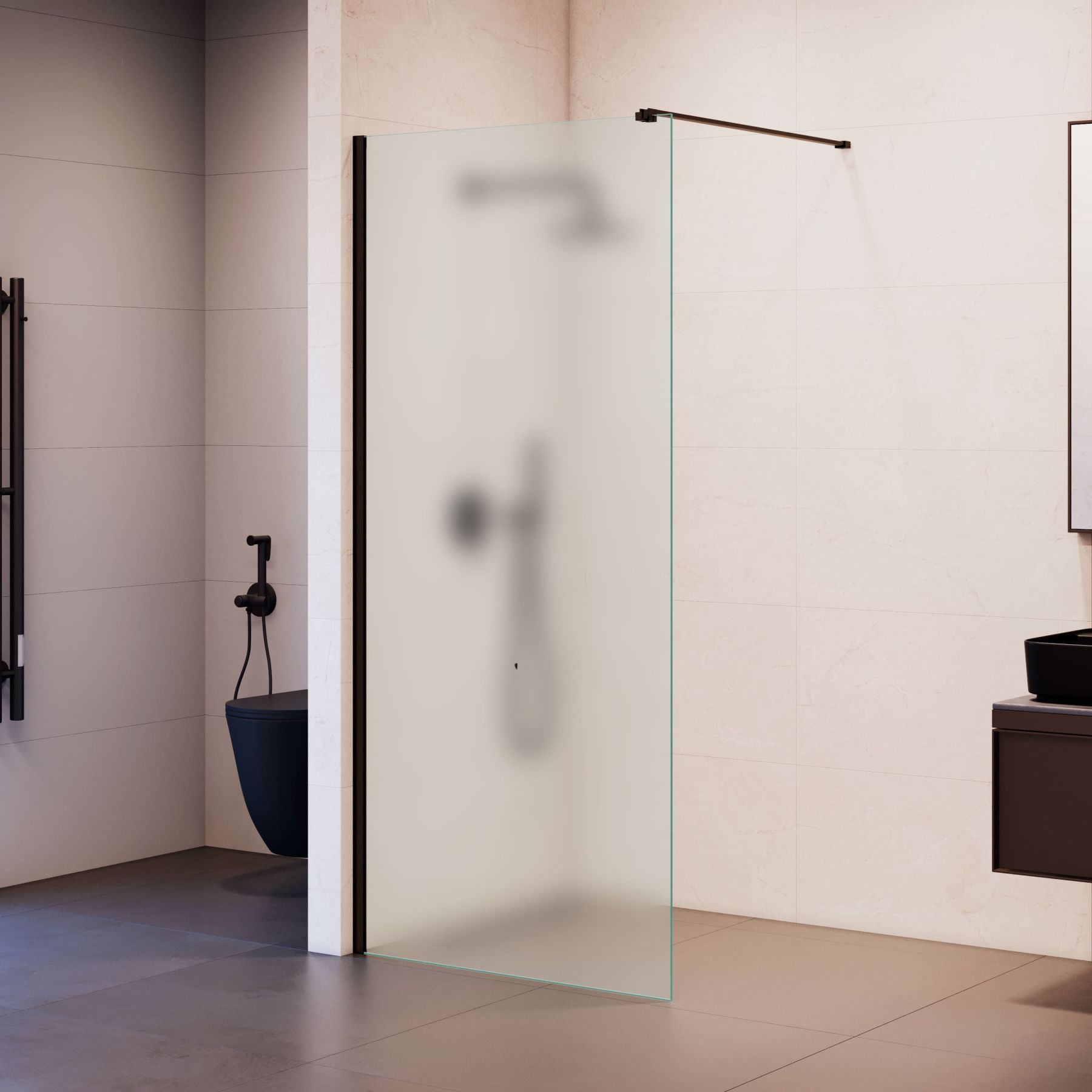 Душевая перегородка RGW WA-210B 351021008-24 80 см профиль чёрный стекло матовое-сатинат