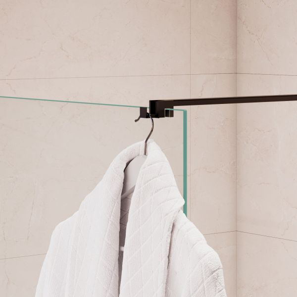 Душевая перегородка из стекла на профиле к стене бескаркасного типа с открытым входом в душ RGW WA-210 и вешалкой крючкообразного типа — Это современное решение в душе, позволяющее эффективно использовать штангу-держатель стекла как вешалку для полотенца или халата, при этом оно не только эффективно зонирует пространство, защищая остальную часть санузла от брызг, но и визуально расширяет вашу ванную комнату, наполняя ее светом и простором.