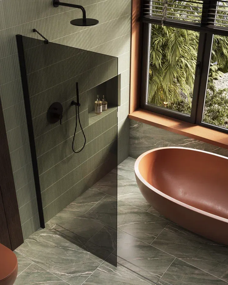Душевая перегородка в профиле by Deonria P-195-89–8-T-B 89см чёрный/прозрачный купить