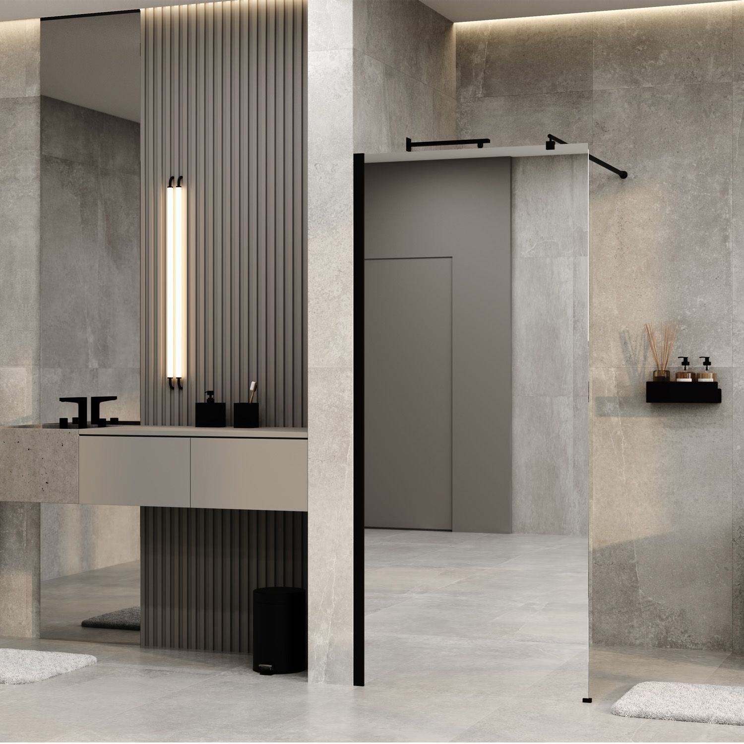 Душевая перегородка WasserKRAFT Rur 30W39MB-MR 90 см профиль чёрный стекло зеркальное купить