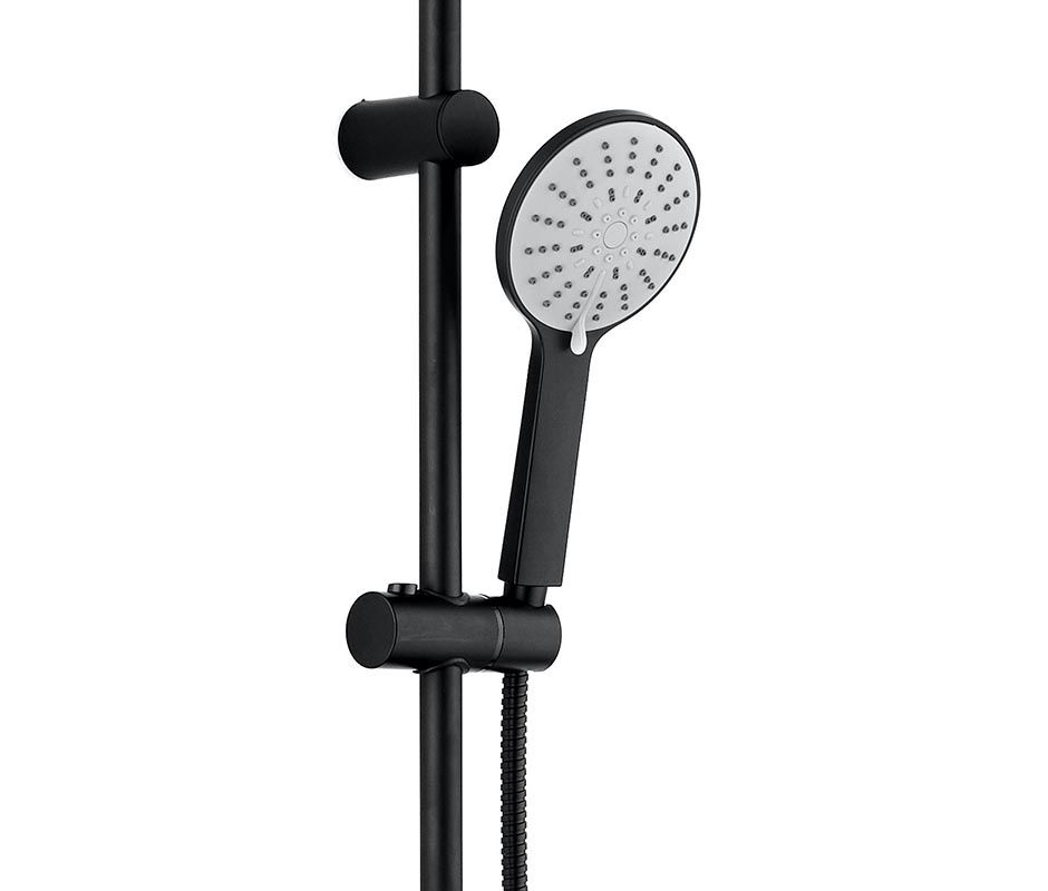 Душевая система с смесителем для ванны/душа изготовлена из первоклассных материалов с применением качественной механической фурнитуры. В комплекте предусмотрено 2 шланга для разных вариантов фиксации лейки, а также мобильное крепление. Верхний душ d 225 мм., душевая лейка 125 мм - 5 режимов струи, держатель лейки и верхнего душа - с регулировкой угла наклона, душевой шланг 150 см в металлической оплетке с защитой от перекручивания. Однорычажный смеситель с фирменным картриджем Agger делает лёгким управление напором и температурой воды, а керамический дивертор переключит её направление с излива на душ даже при низком давлении. Модное на сегодняшний день покрытие матового чёрного цвета, за которым просто ухаживать мягкой салфеткой, получено порошковой окраской с многоступенчатой системой подготовки и высокотемпературной обработкой. Аэратор экономит воду и, обогащая струю воздухом, делает её мягкой и без брызг.