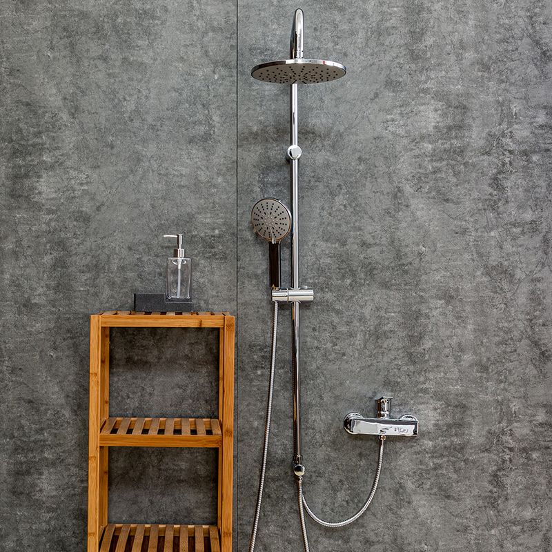 Душевая система с смесителем для душа будет прекрасно смотреться в интерьере современной ванной комнаты. Смеситель с фирменным картриджем делает лёгким управление напором и температурой воды. Корпус изделия изготовлен из высококачественной латуни, не подверженной коррозии от контакта с водой. Хромированное покрытие, за которым очень просто ухаживать мягкой салфеткой, обеспечивает блеск на долгие годы. Душевая система с регулируемым по наклону верхним душем (d 225 мм) и с пятирежимной лейкой (d 125 мм) доставят истинное удовольствие при принятии водных процедур (ручная лейка и верхний душ с защитой от известкового налёта). Для удобства предусмотрены мыльница с отверстием посередине для стока воды и надёжный гибкий шланг (1500 мм) с защитой от перекручивания (в оплётке из нержавеющей стали). Штанга 970 мм. с регулируемым по высоте держателем - возможность установки в старые отверстия.
