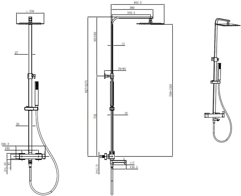 Верхний душ: 25х25 см.