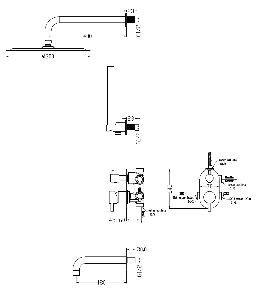 Душевая система Boheme Uno 464-2-BCR с изливом: