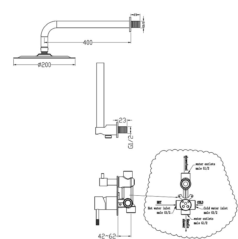 Душевая система Boheme Uno 464-BG чёрный/золото купить