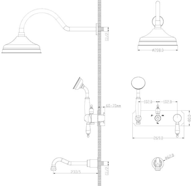 - Размер верхнего душа, см:20.8