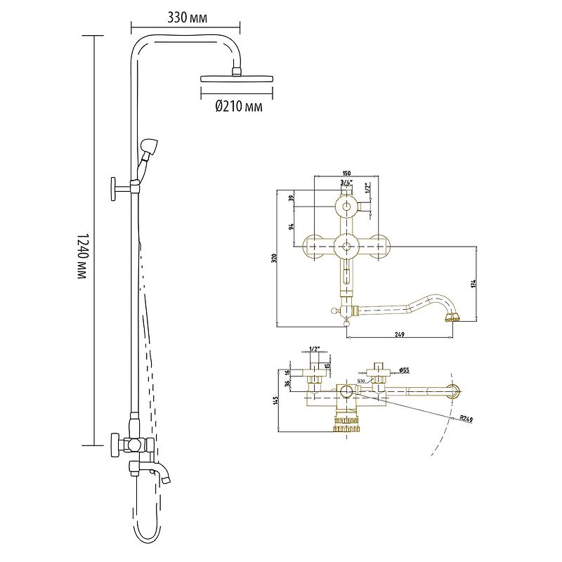 Душевая система Bronze de Luxe WINDSOR 10120DF/1, бронза