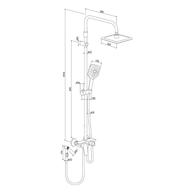 Размер верхнего душа (ШхД): 22х22 см.