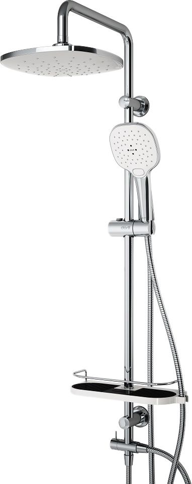 Душевая система Dorff PRIME D0744010 Выгода в комплекте! Душевая система и смеситель для ванны и душа Prime по привлекательной цене. Ручные и верхние души с возможностью выбора режима, шланги с защитой от перекручивания, стойки с возможностью регулировки по высоте, полки, которые всегда под рукой.Стильный белый цвет - станет отличным цветовым решением для интерьера любой ванной комнаты. Практичный однорычажный смеситель для ванны и душа Prime обладает увеличенным изливом, который позволяет обеспечить удобство подачи воды, даже если он установлен на ванне с широким бортом.Немецкая функциональность в купе со стильным и лаконичным дизайном делает смеситель оптимальным выбором для практичных хозяев.