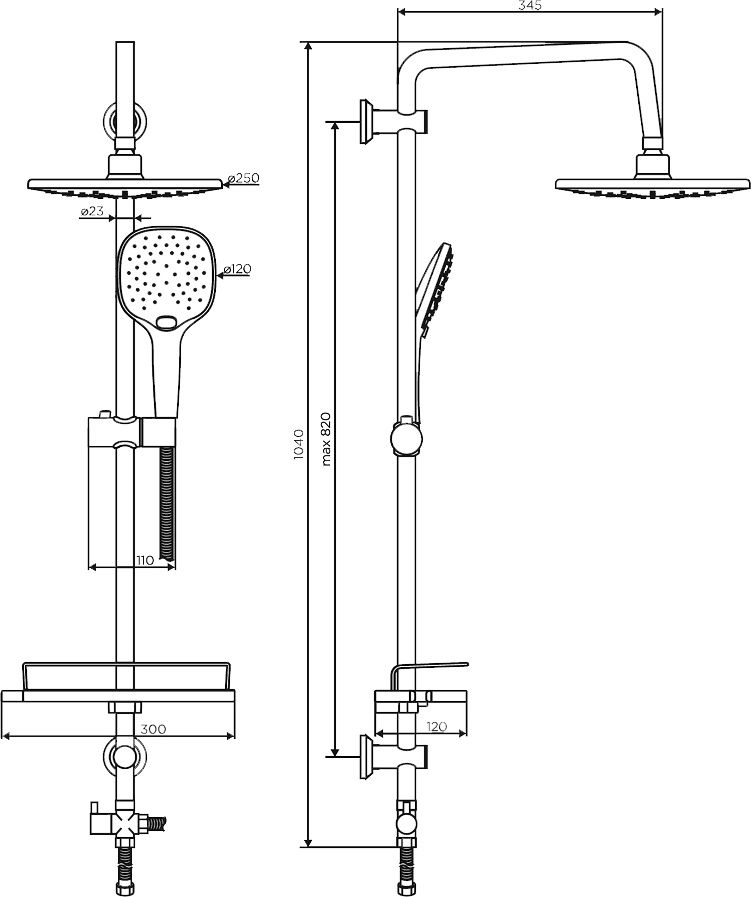 Размер верхнего душа, см:25